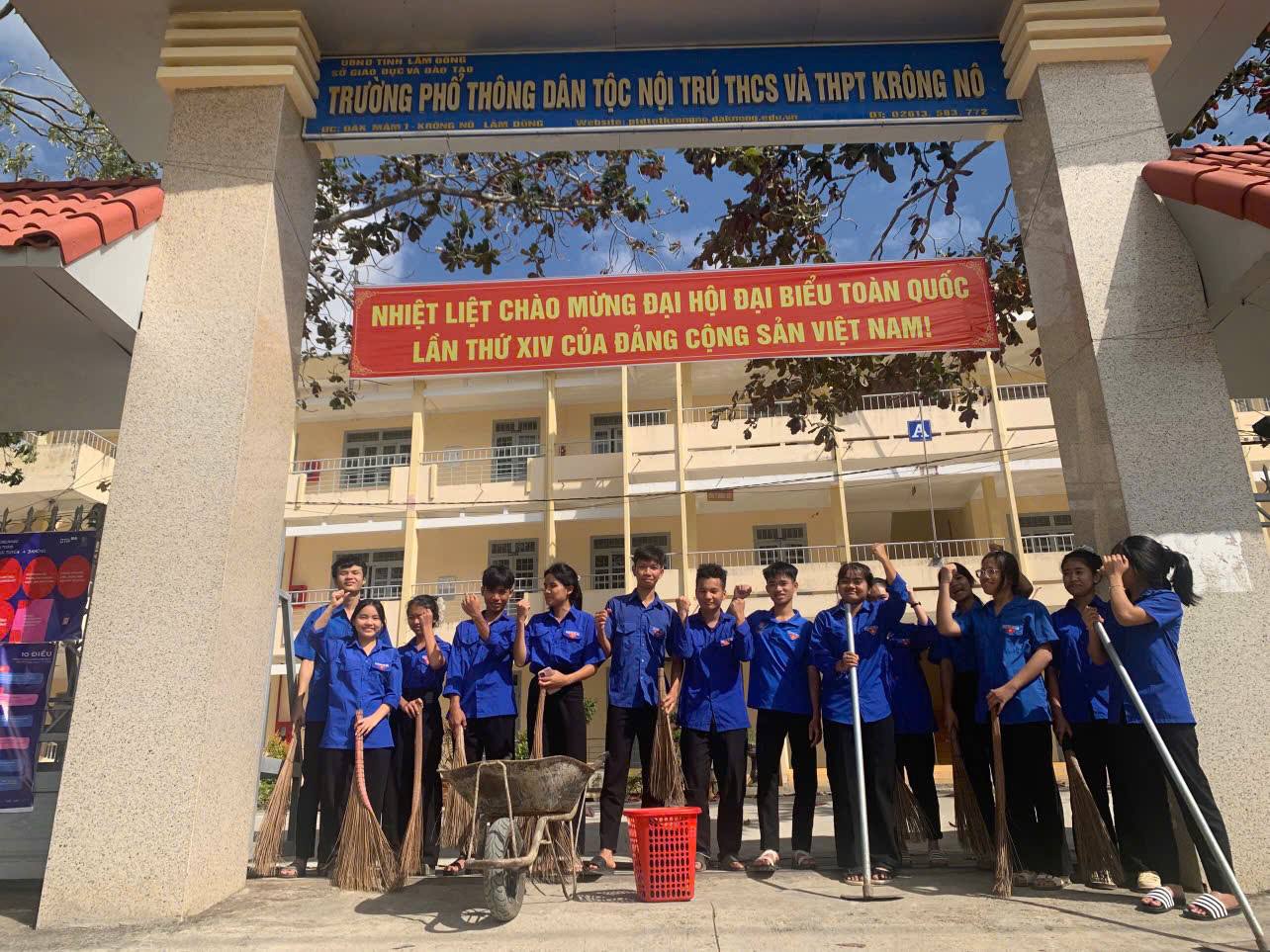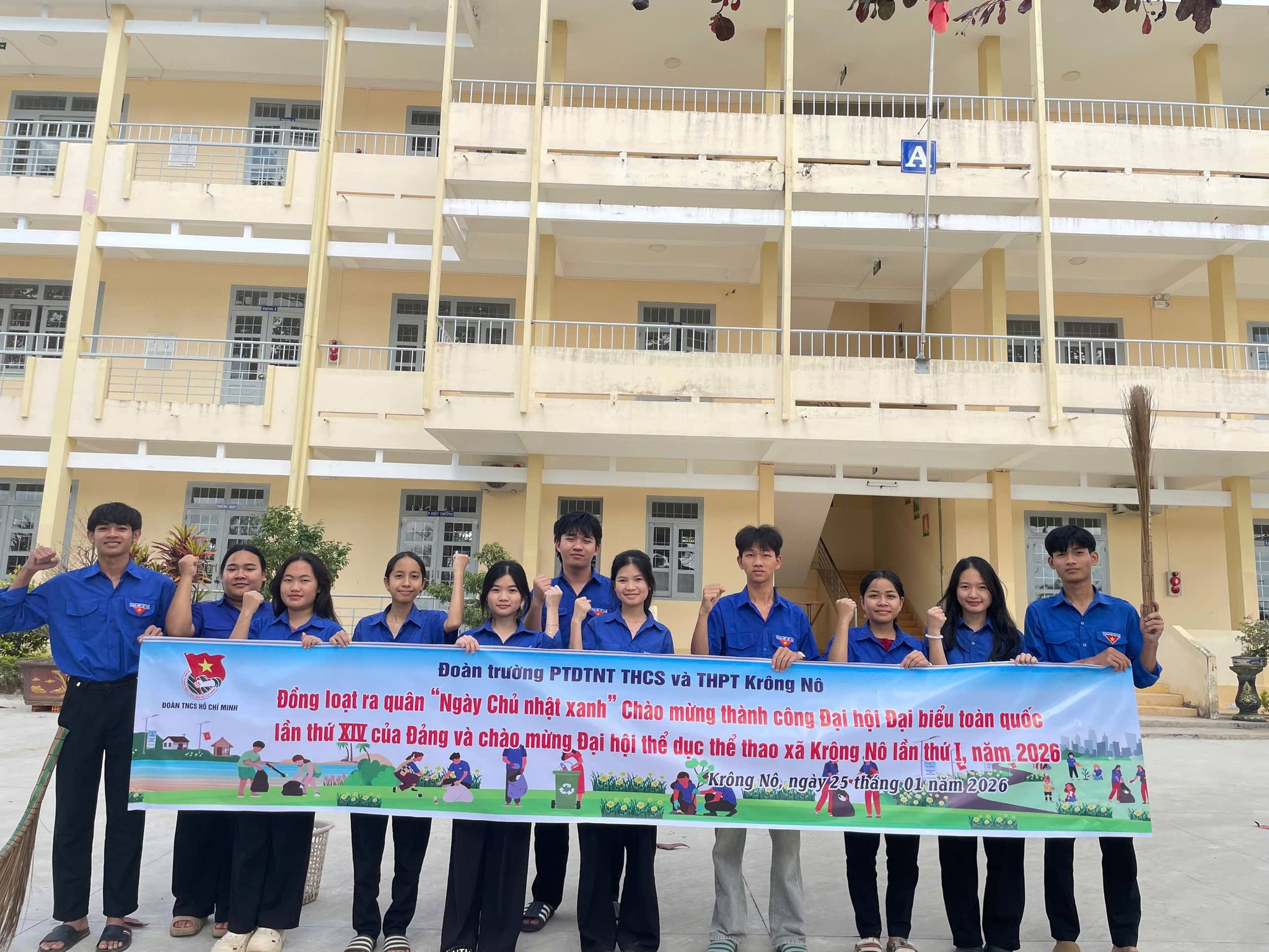 Hòa trong không khí phấn khởi chào mừng thành công Đại hội Đại biểu toàn quốc của Đảng lần thứ XIV và hướng tới Đại hội Thể dục Thể thao xã Krông Nô lần thứ I, năm 2026, sáng ngày 25/01/2026, Đoàn Thanh niên Trường PTDTNT THCS và THPT Krông Nô đã tổ chức đồng loạt ra quân Ngày Chủ nhật xanh với sự tham gia tích cực, trách nhiệm của các chi đoàn đến từ 3 khối lớp.