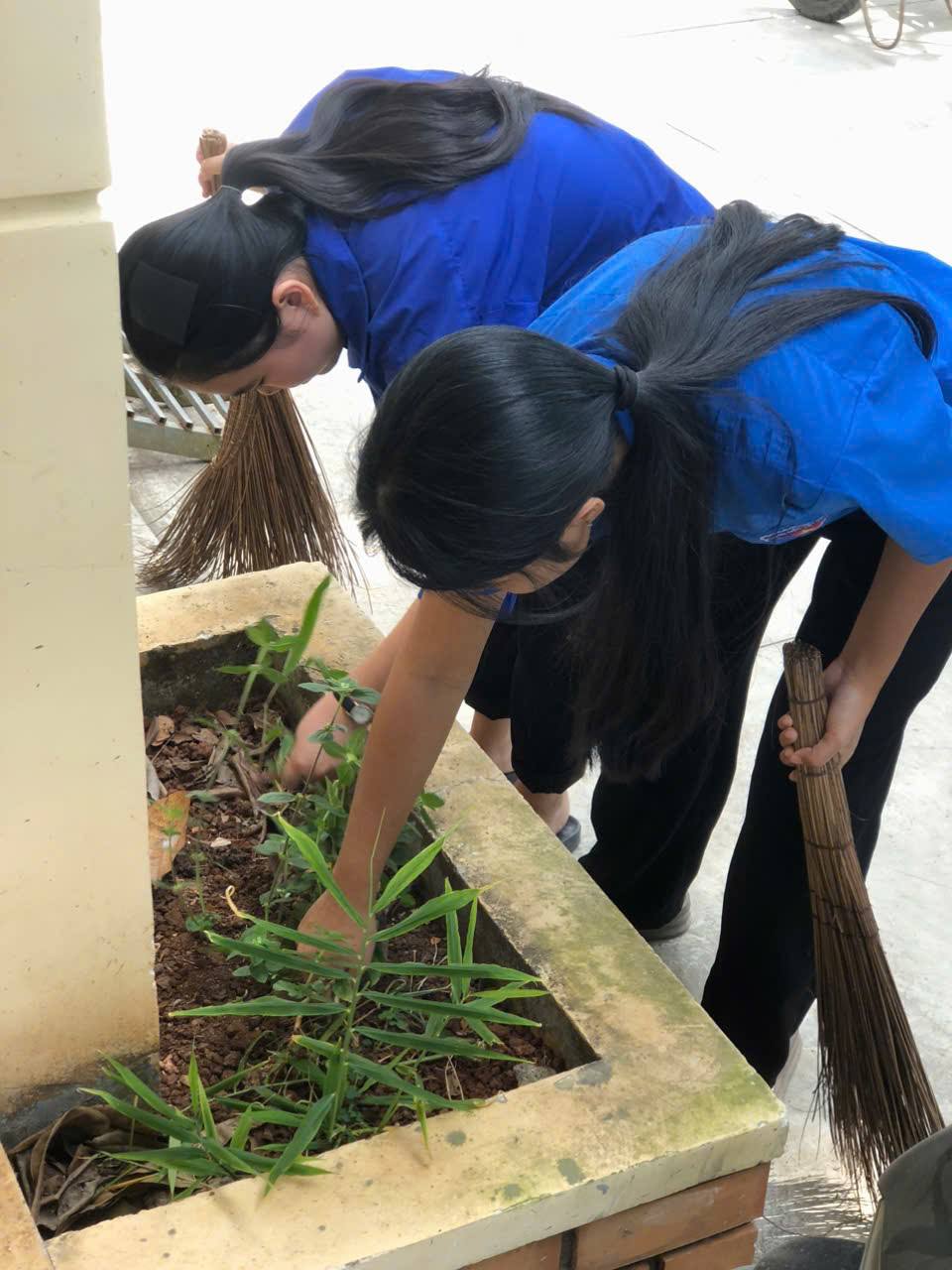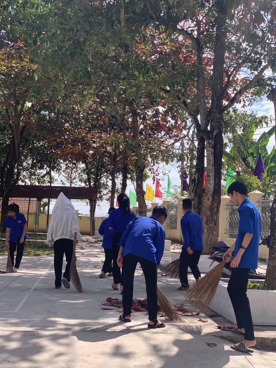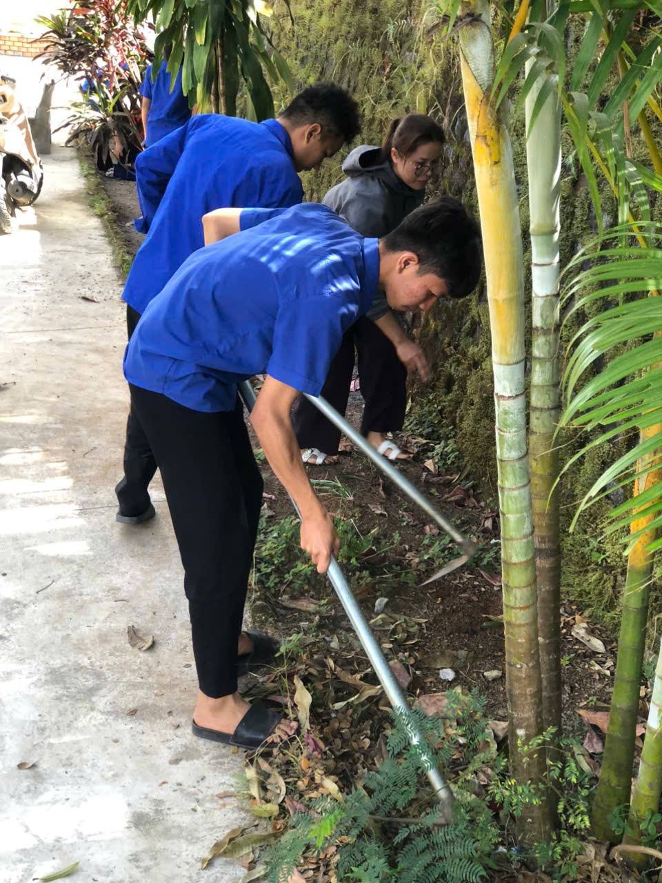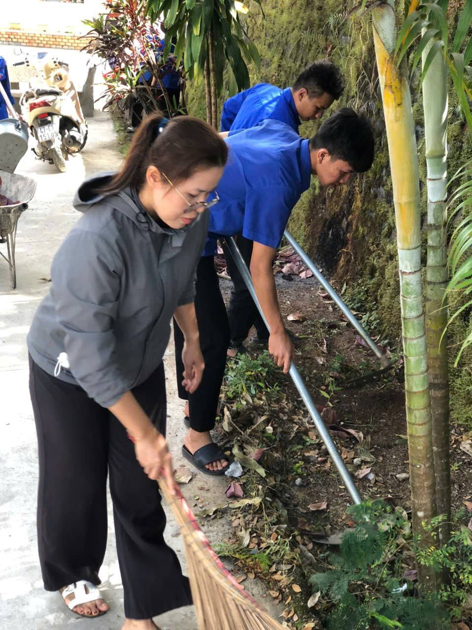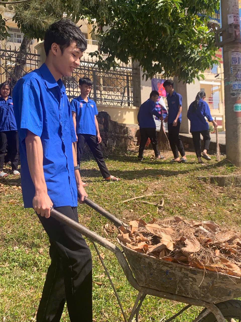Ngay từ sáng sớm, các chi đoàn đã được phân công nhiệm vụ cụ thể và tiến hành thu gom rác thải nhựa, quét dọn vệ sinh khu vực sân trường, con đường trước cổng trường, khu nội trú, các khu vực trong khuôn viên nhà trường, đặc biệt là vườn bạch đàn – công trình thanh niên được xây dựng từ năm 2017 và được duy trì, chăm sóc đến nay.