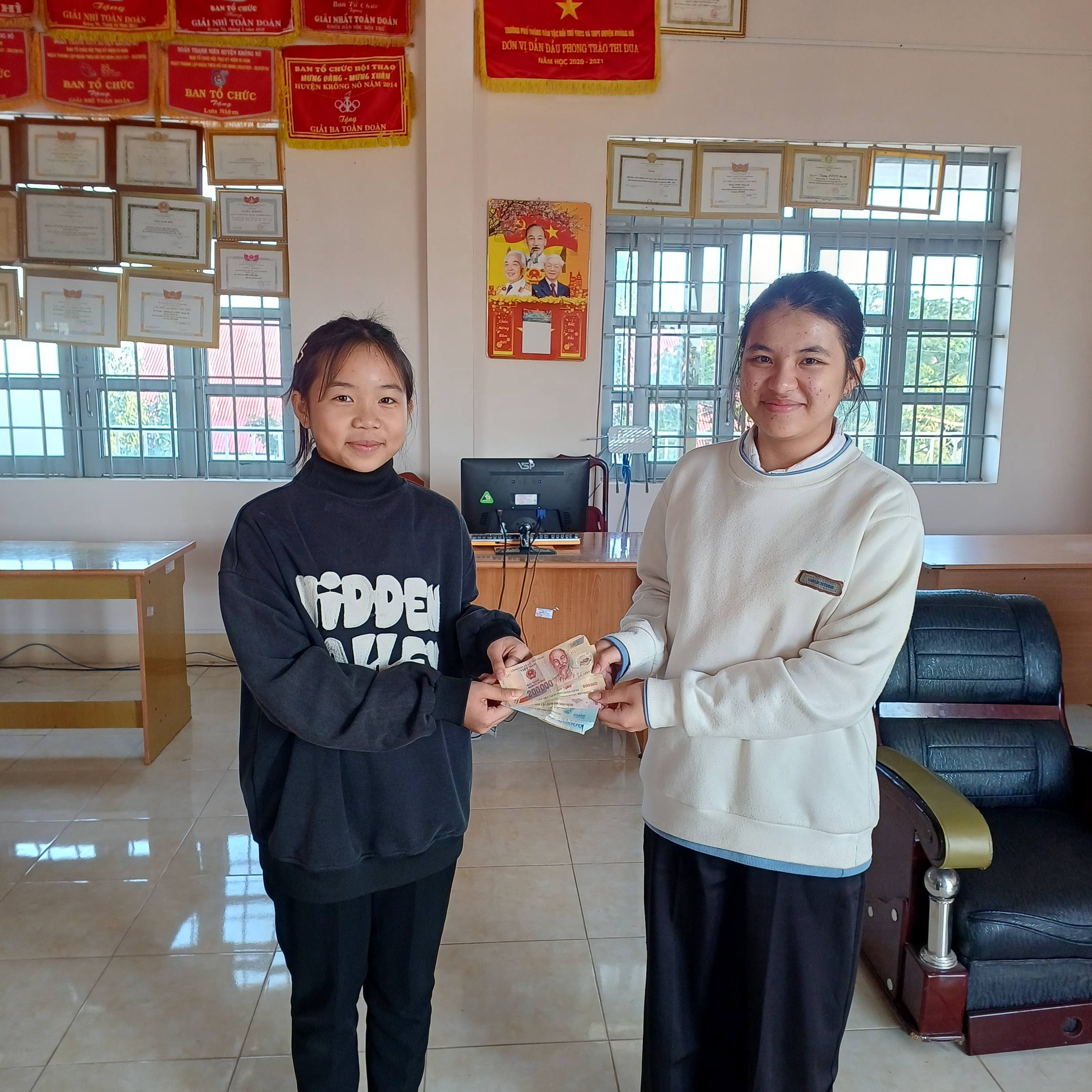 Sáng ngày 12/01/2026, trên đường đến trường, em Lương Thị Đợi, học sinh lớp 6 Trường PTDTNT THCS và THPT Krông Nô, đã nhặt được một chiếc bọc màu đen ở cầu thang khu E, bên trong có số tiền hơn 700.000 đồng.