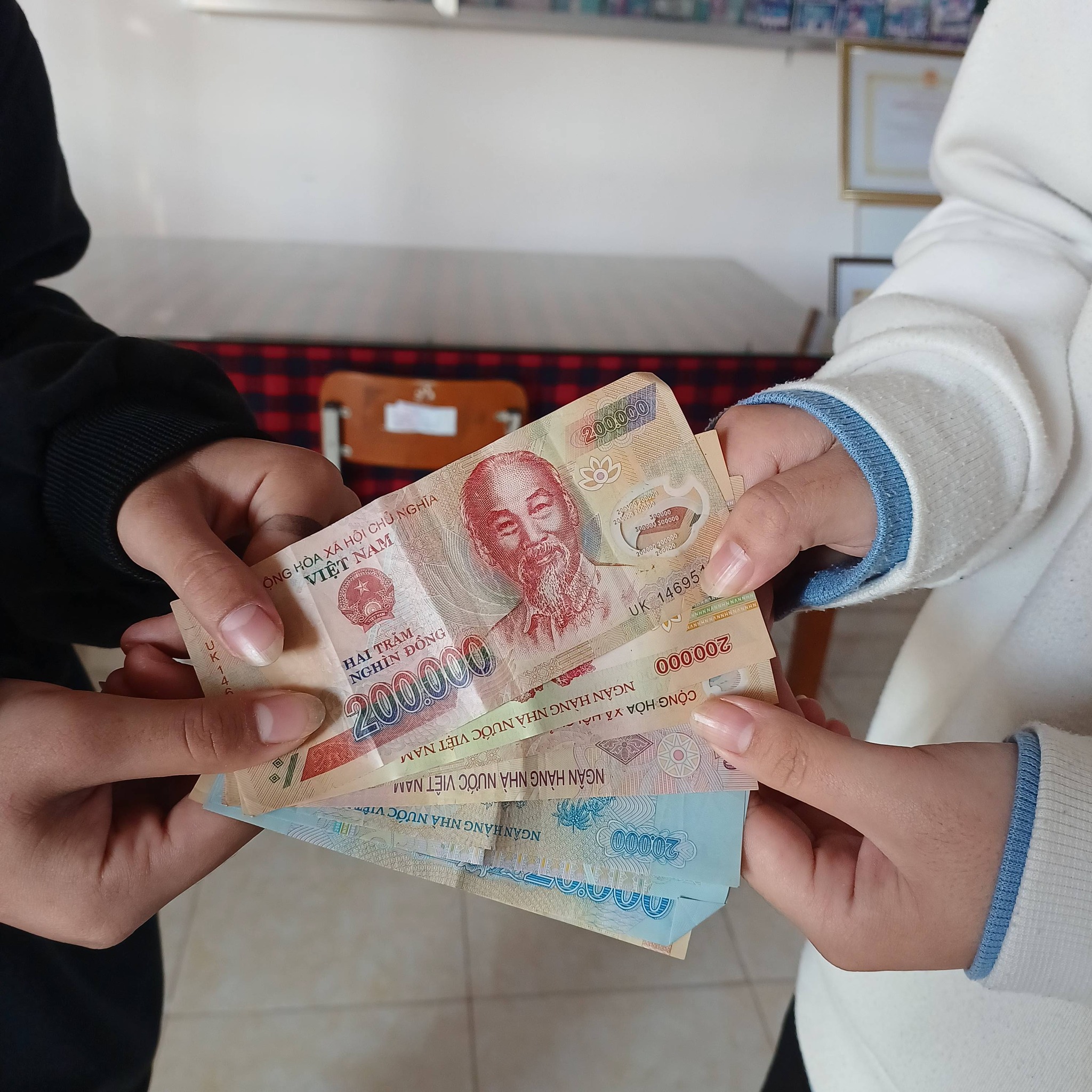 Ngay sau khi nhặt được, em Đợi không do dự mà chủ động thông báo và giao nộp lại số tiền cho Đoàn Thanh niên nhà trường, với mong muốn sớm tìm được người đánh rơi để trao trả. Đây là một hành động tuy nhỏ nhưng thể hiện đức tính trung thực, ý thức trách nhiệm và lối sống đẹp của một học sinh nội trú.