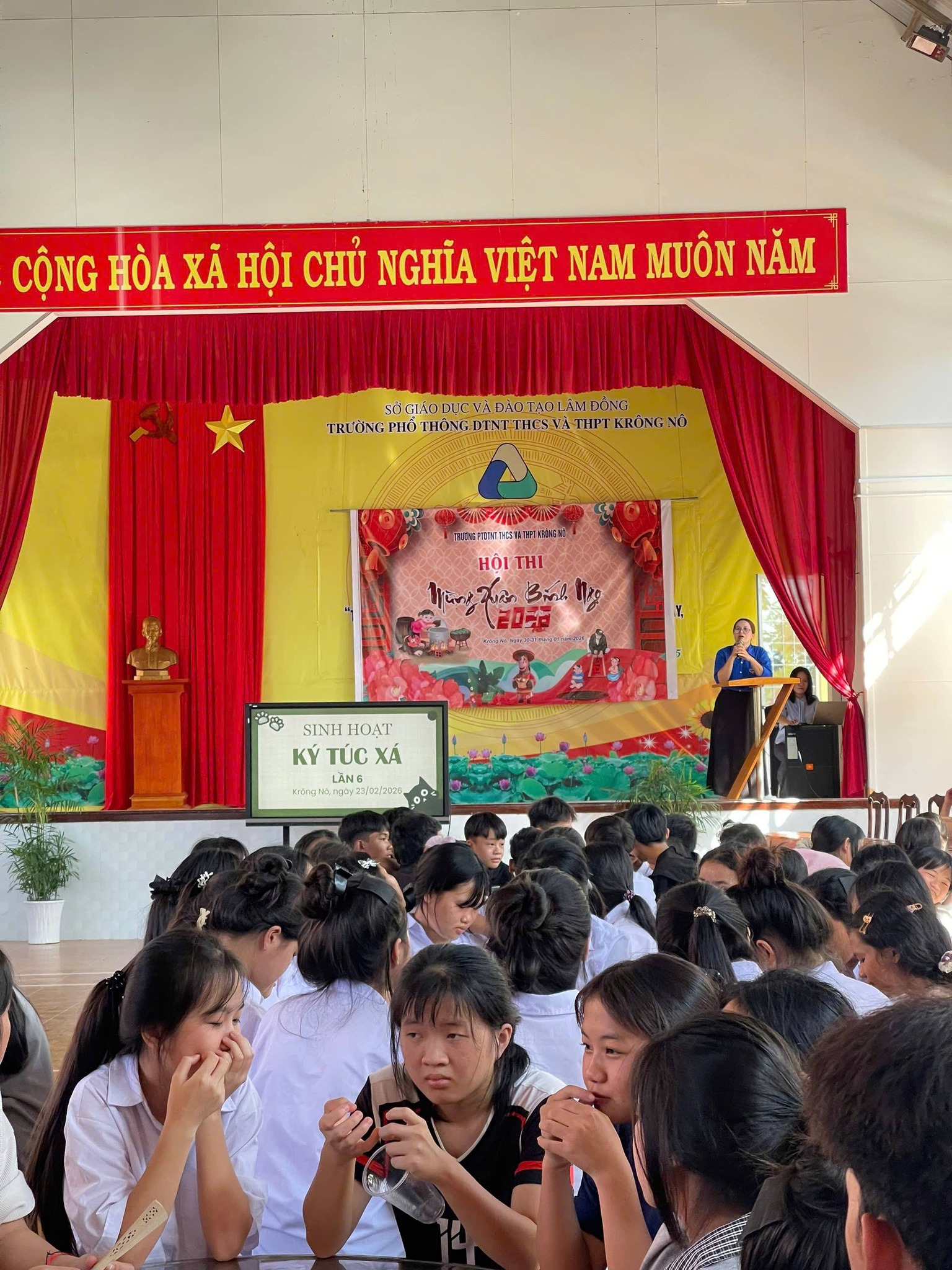 Chiều ngày 23/02/2026, Trường PTDTNT THCS và THPT Krông Nô đã tổ chức Sinh hoạt KTX lần 6, năm học 2025 – 2026 sau dịp tết Nguyên đán Bính ngọ với sự tham gia đầy đủ của GVCN và toàn thể học sinh 7 khối lớp.