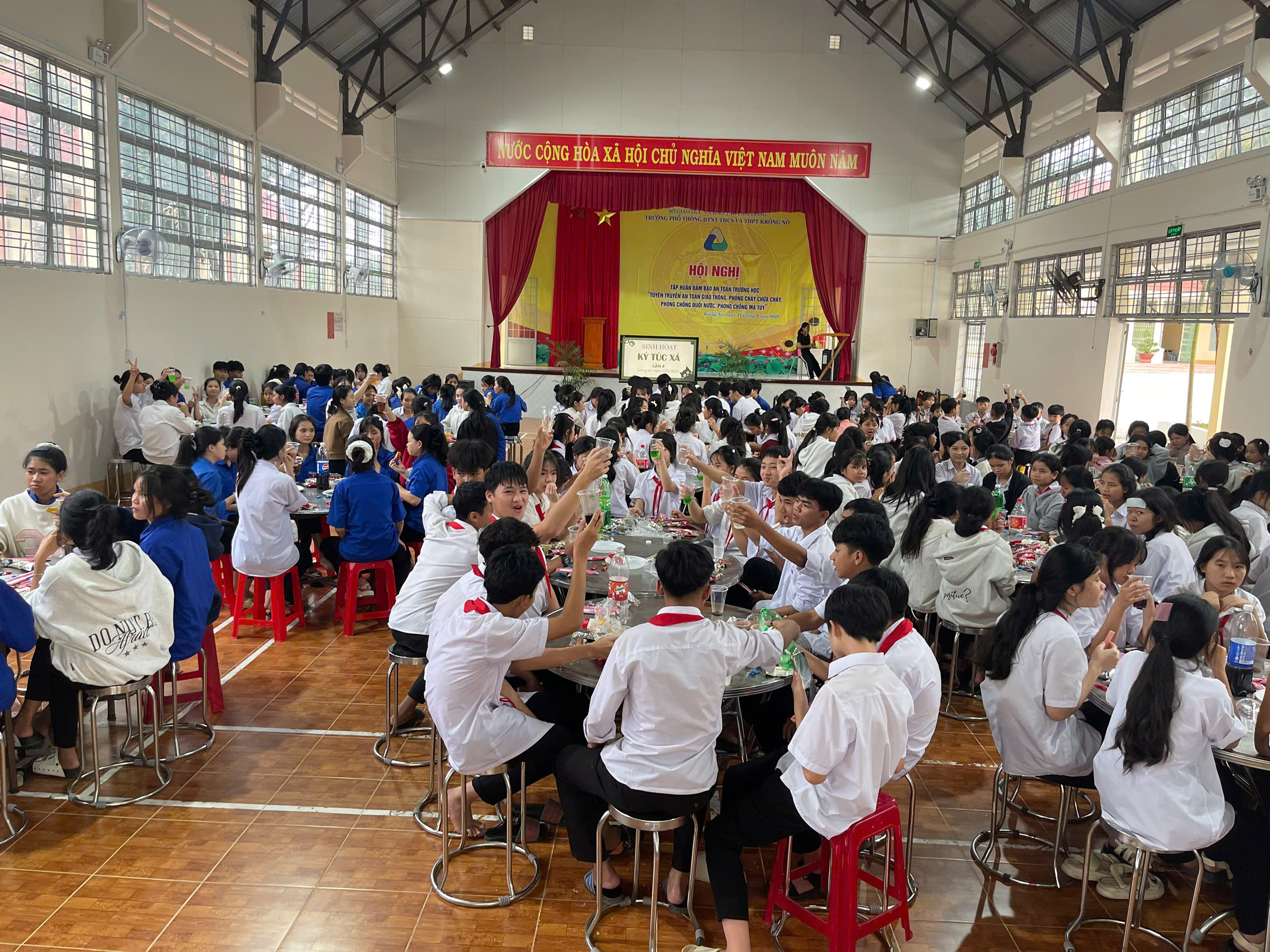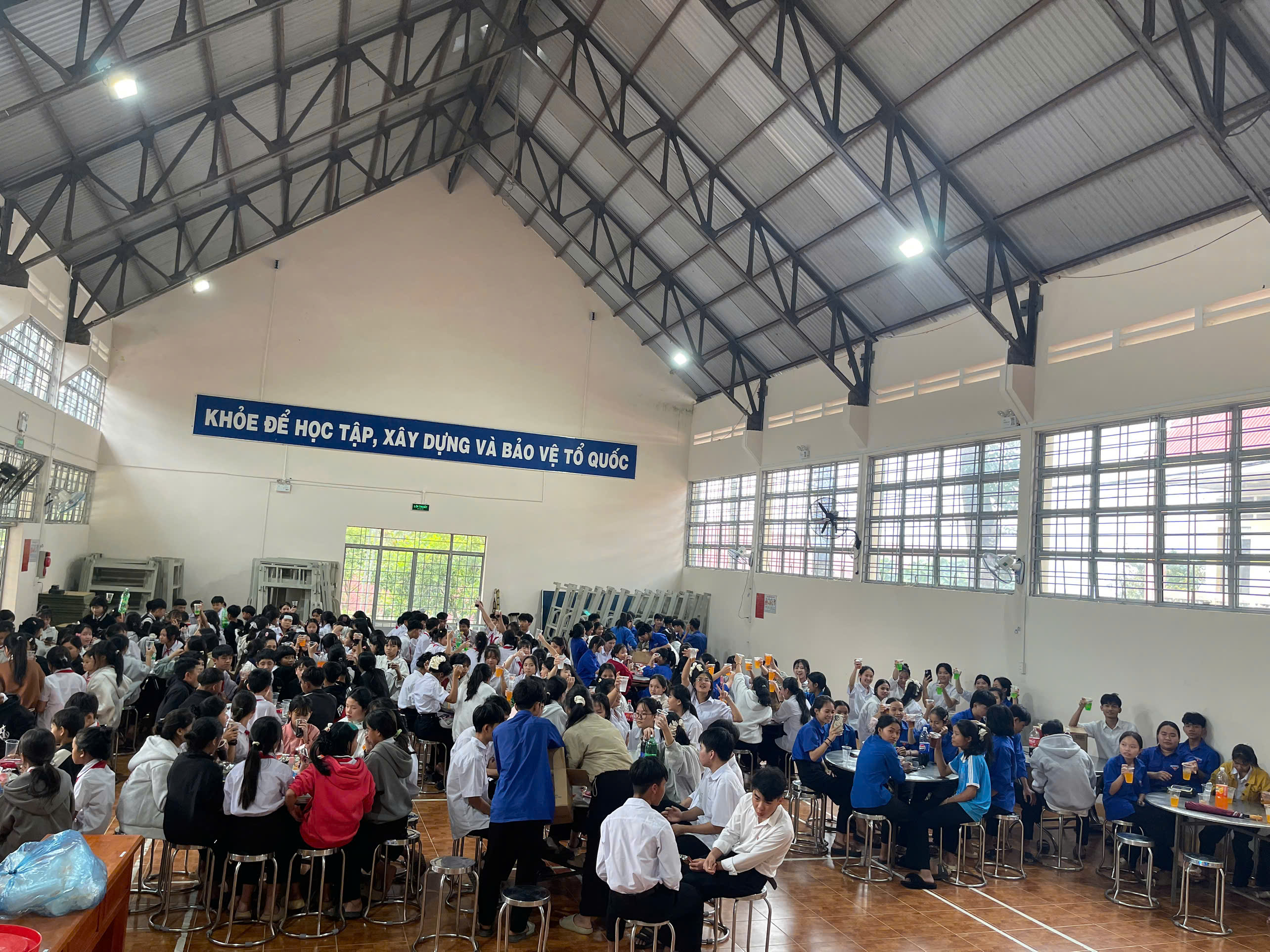 Kết thúc buổi sinh hoạt, Đoàn trường đã tổ chức liên hoan tiệc ngọt trong không khí vui tươi, ấm áp, góp phần tạo sự gắn kết, đoàn kết giữa các học sinh, đoàn viên thanh niên trong toàn trường giúp các em thêm yêu quý mái nhà chung KTX Nội trú Krông Nô thân thương.