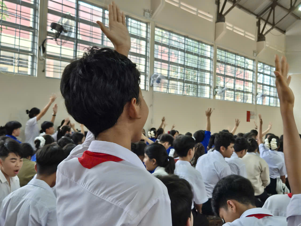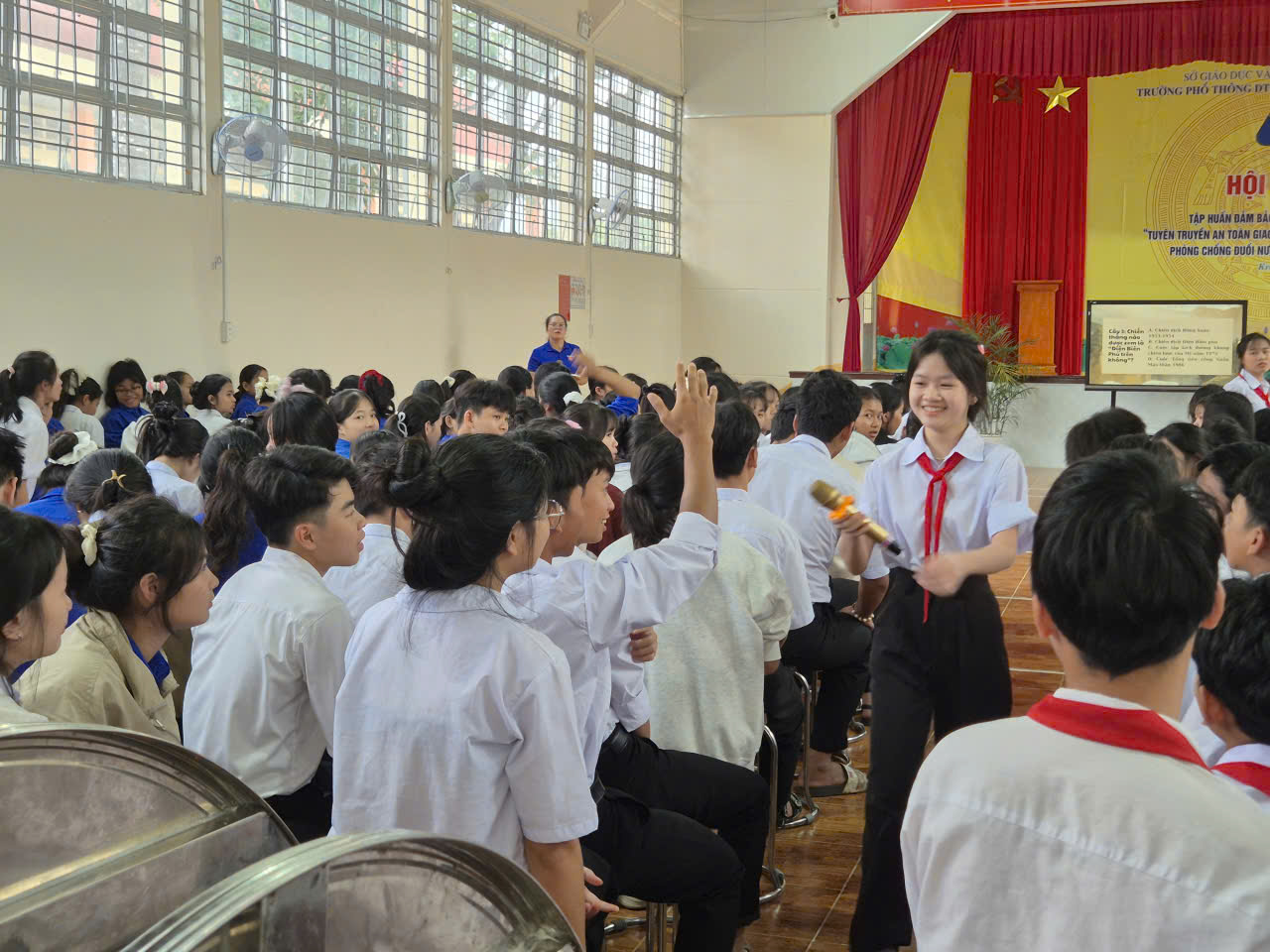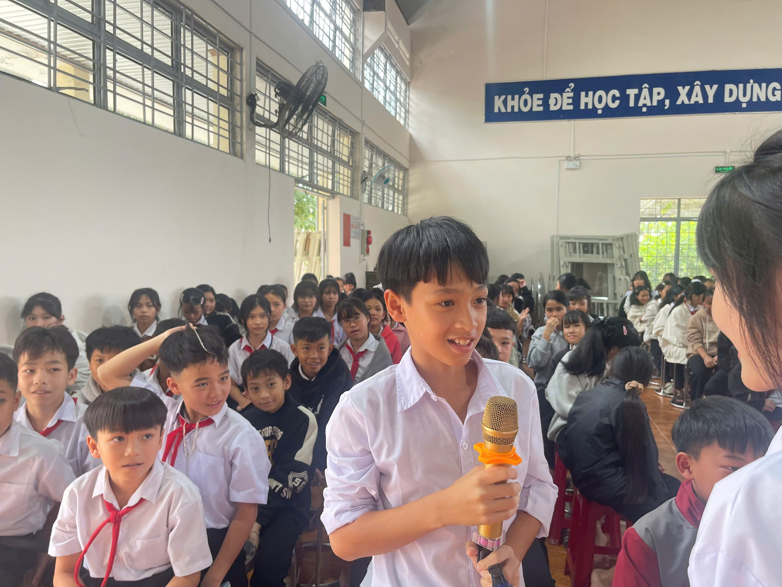 Buổi sinh hoạt cũng lồng ghép tuyên truyền hưởng ứng Tháng hành động vì bình đẳng giới, nâng cao nhận thức về vai trò, trách nhiệm của mỗi cá nhân trong xây dựng môi trường học đường an toàn, tôn trọng, không phân biệt đối xử; phòng, chống HIV/AIDS và các bệnh truyền nhiễm; phòng, chống dịch bệnh theo mùa, chủ động bảo vệ sức khỏe bản thân và mọi người xung quanh. Đặc biệt, học sinh được tuyên truyền về an toàn trực tuyến trên không gian mạng, hưởng ứng Chiến dịch truyền thông “Không một mình”, giúp các em nâng cao kỹ năng sử dụng mạng xã hội an toàn, văn minh; biết cách tự bảo vệ mình trước các nguy cơ trên môi trường số và sẵn sàng chia sẻ, hỗ trợ khi gặp khó khăn.