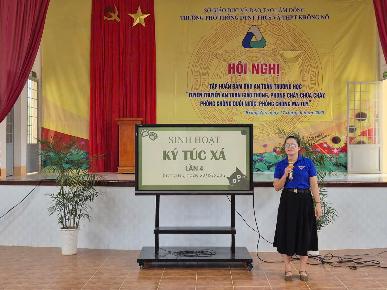 Hòa chung không khí thi đua sôi nổi của cả nước Chào mừng kỷ niệm 81 năm Ngày thành lập Quân đội Nhân dân Việt Nam (22/12/1944 – 22/12/2025) và thực hiện sinh hoạt KTX định kì hằng tháng, chiều ngày 22/12/2025, Trường PTDTNT THCS và THPT Krông Nô đã tổ chức buổi sinh hoạt KTX lần thứ 4 với nhiều nội dung thiết thực, ý nghĩa, góp phần giáo dục truyền thống, nâng cao ý thức, trách nhiệm và kỹ năng sống cho học sinh nội trú.