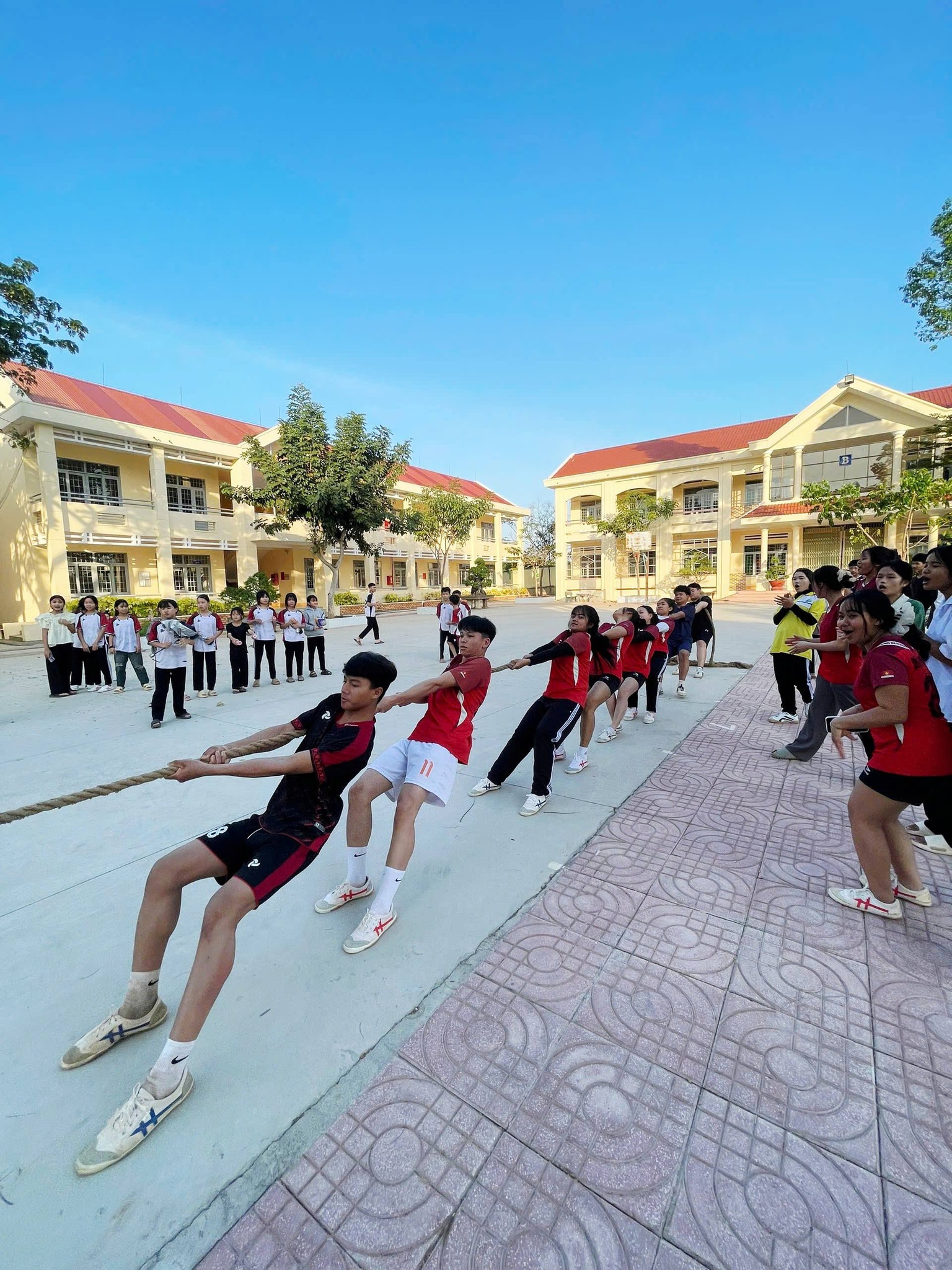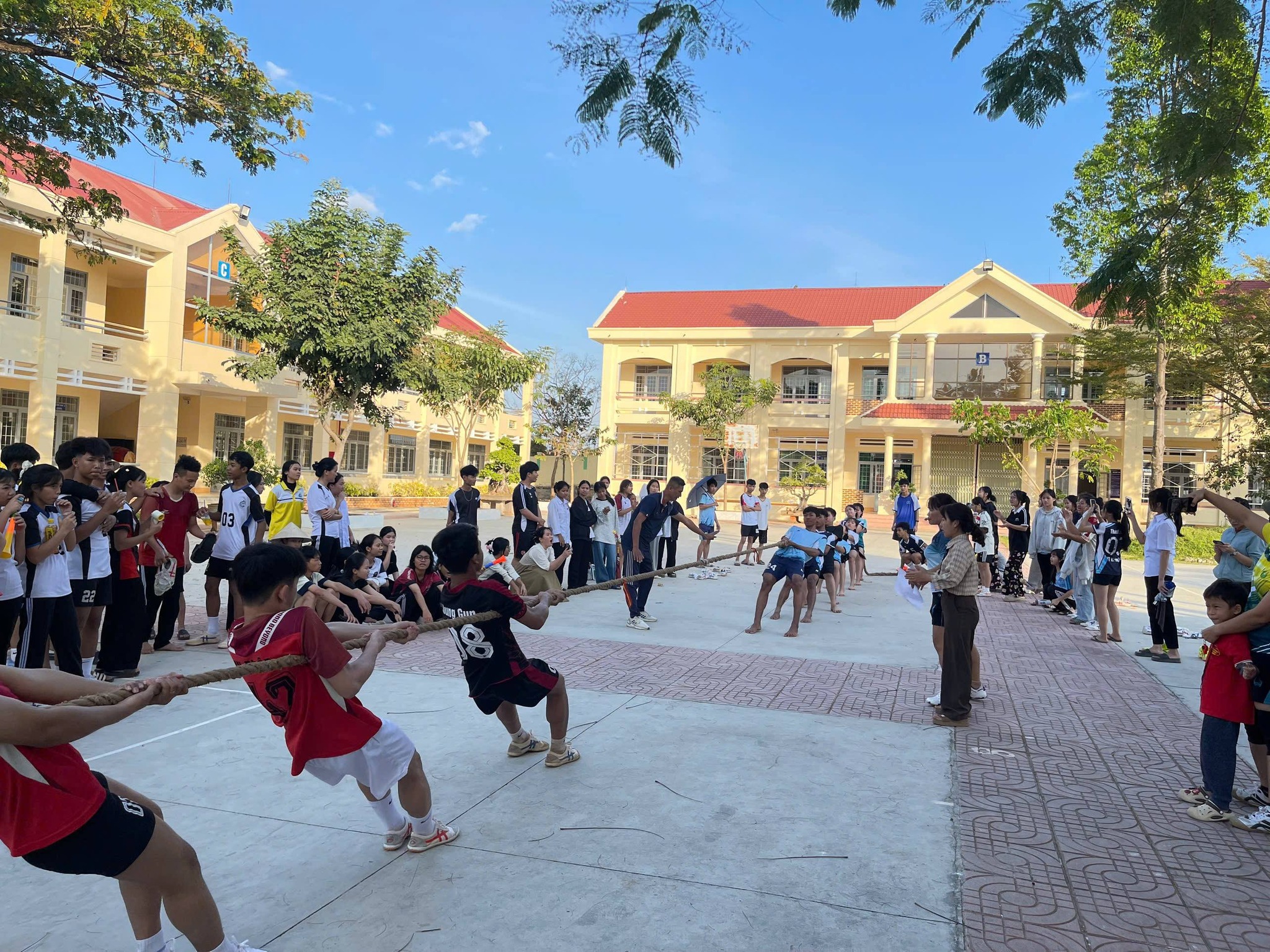 Tham gia Đại hội, học sinh các khối lớp đã hào hứng tranh tài ở nhiều môn thể thao đa dạng như: bóng đá, kéo co,… Mỗi môn thi đấu đều diễn ra trong không khí sôi nổi, kịch tính, thu hút sự cổ vũ nhiệt tình của đông đảo thầy cô giáo và học sinh toàn trường.